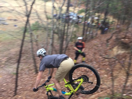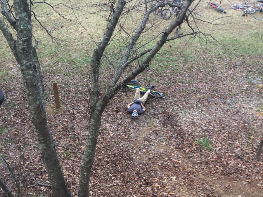 The young man is okay, but this was a scary experience. He was not a part of my skills class. I was demonstrating for my class what to do and explaining to them what not to do. And then he backed up and did exactly what I said not to do. He is grabbing his bladder area, and I was super scared that he was going to have some internal damage, but thank God he didn’t. Similar crashes occur frequently on the feature that one of my students is pictured riding successfully above called the “The Lightning Filter Feature.”